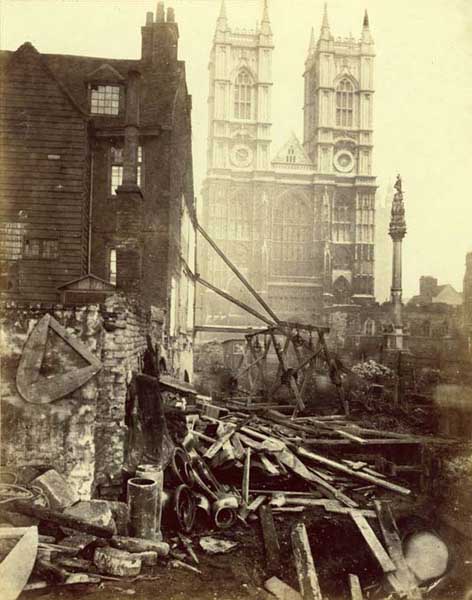 Henry Flather: site clearance prior to excavation work, near Westminster Abbey,
