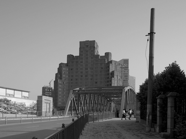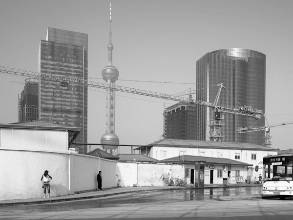 The constant visual interruptions of scenes of construction, destruction, and buildings resembling geometric cocoons wrapped with green nets banded with steel scaffolds and spidery cranes spinning their cables going up and down delivering bricks, stones, steel and things in between, the droning sounds of trucks, the rhythm of drills and pile drivers, the calls of workers amid the slosh of concrete boom pumps the blaring of horns amid stalled traffic. This is Shanghai at present.